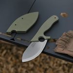 **WYGODNA KABURA I WYBÓR SPOSOBU PRZENOSZENIA**: W zestawie z nożem otrzymujemy kaburę z tego samego materiału, z którego wykonano rękojeść tj. z G10. Jest to wyróżniający całą konstrukcję zabieg a sama pochwa idealnie licuje się po jej założeniu z rękojeścią szczelnie zamykając całość konstrukcji. Kabura posiada możliwość personalizacji sposobu przenoszenia za sprawą załączonych do niej i montowanych w zależności od potrzeb: