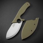 - Pochwa: zielony kompozyt G10 z dwoma akcesoriami umożliwiającymi personalizację sposobu przenoszenia: klamrą typu tek-lok oraz stalowym klipsem