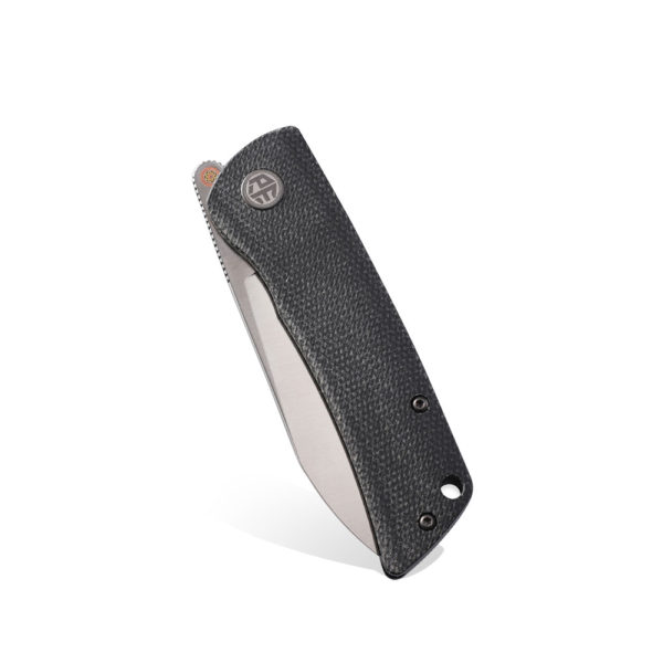 Petrified Fish Flavorist PF-E05 SDMS Black Micarta Folding Knife has an efficient blade made of K110 steel (satin finish). The knife handle is made of black micarta. The design of the knife is completed with a backspacer and a steel carrying clip. The opening of the knife occurs due to the protruding front flipper and the blade is blocked by a liner lock.