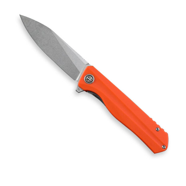 The Petrified Fish Forward PF-818 Orange Stonewash folding knife has an efficient drop point blade made of D2 steel known for its cutting efficiency and easy to sharpen and care for. The handle of the knife is made of orange G10 composite. The knife is opened due to the protruding flipper and the blade is blocked by a liner lock.