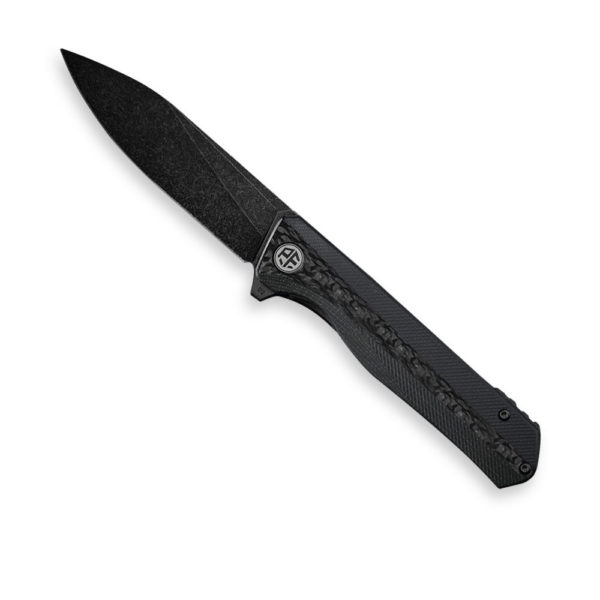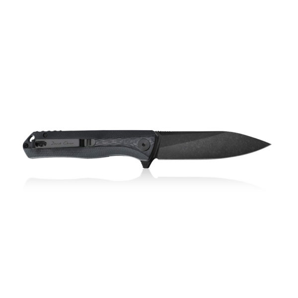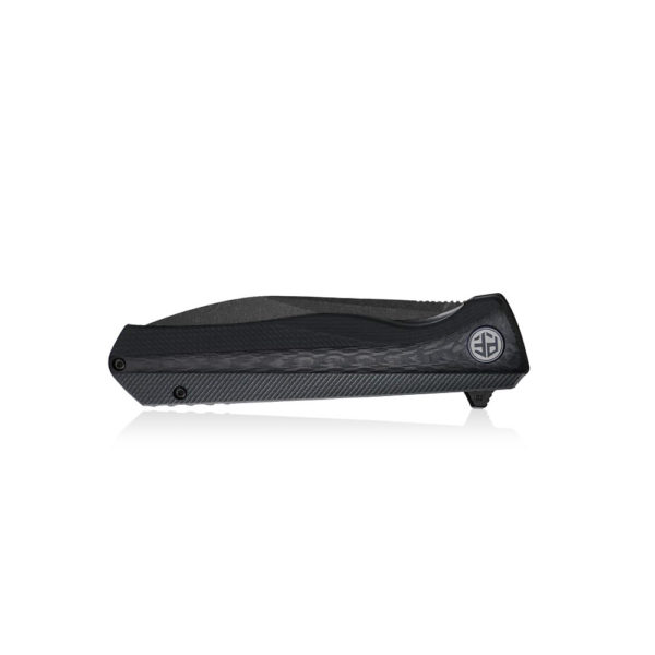 Petrified Fish Forward PF-818 CDW G10 & CF folding knife has an efficient drop point blade made of D2 steel (with black titanium coating) known for its cutting efficiency and easy to sharpen and care for. The handle of the knife is made of black G10 composite and carbon fiber. The knife is opened due to the protruding flipper and the blade is blocked by a liner lock.