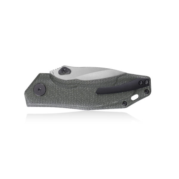 Petrified Fish Havrog PF-P04 GRMW Green Micarta has an efficient drop point blade made of K110 steel (sandblasted finish). The handle of the knife is made of green micarta. The knife is opened by a thumb stud and the blade is blocked by a liner lock.