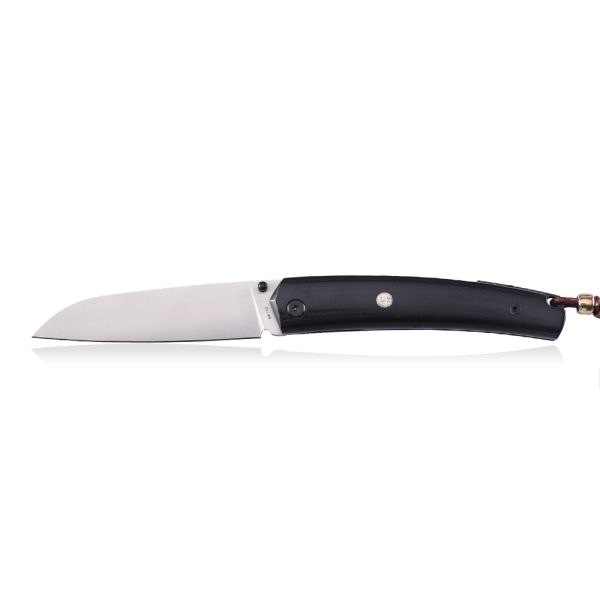 - Blade: folding knife, sheepsfoot profile, flat grind, plain cutting edge