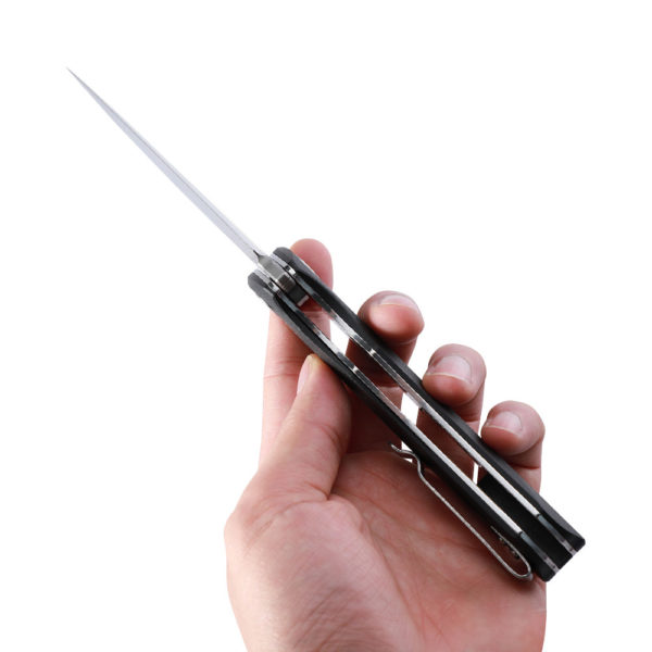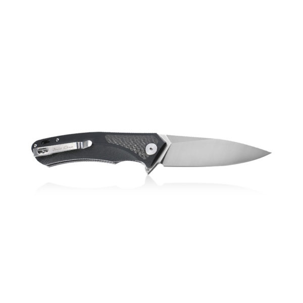 - HANDLE: Black G10 composite with carbon fiber inserts