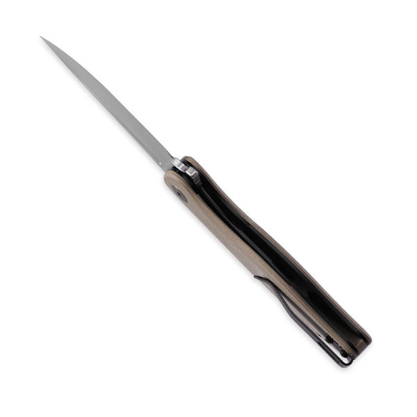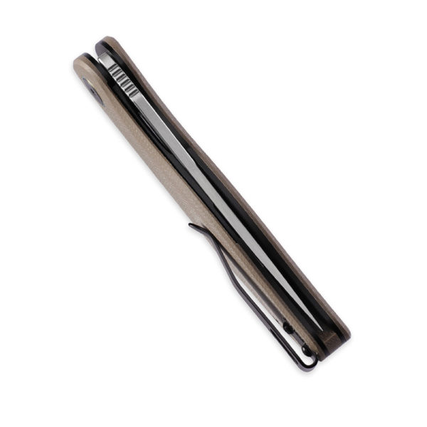 - Handle: steel liners, canvas micarta, steel deep carry clip (Tip-Up)
