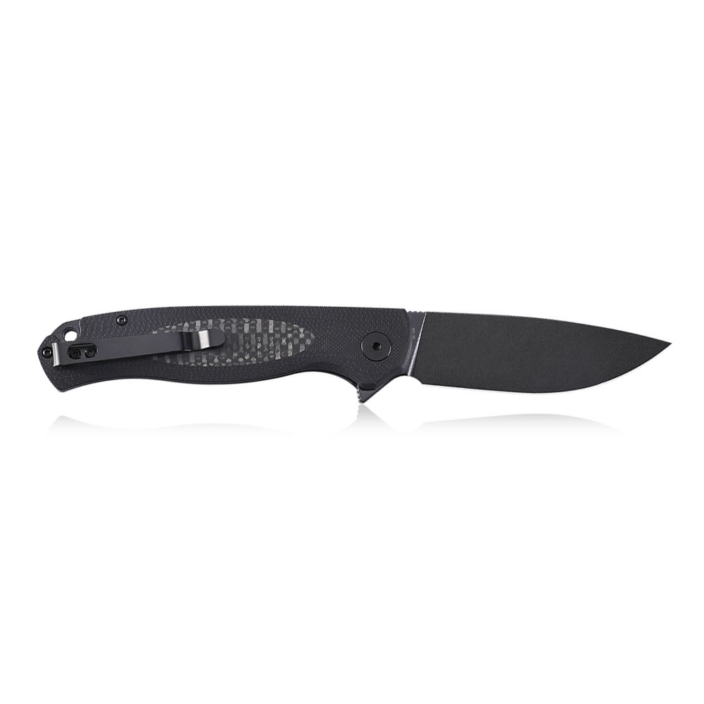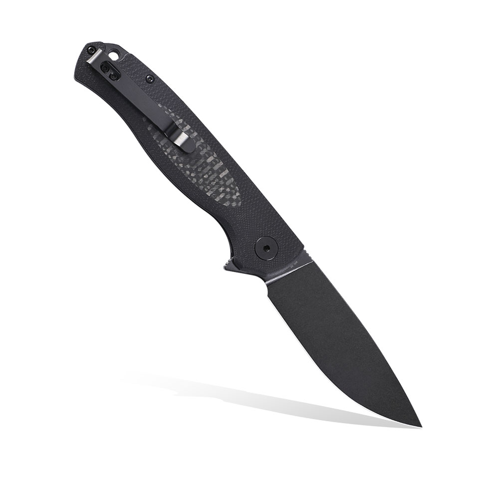 - Handle: steel liners, G10 & CF, steel deep carry clip (Tip-Up)