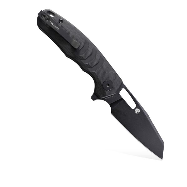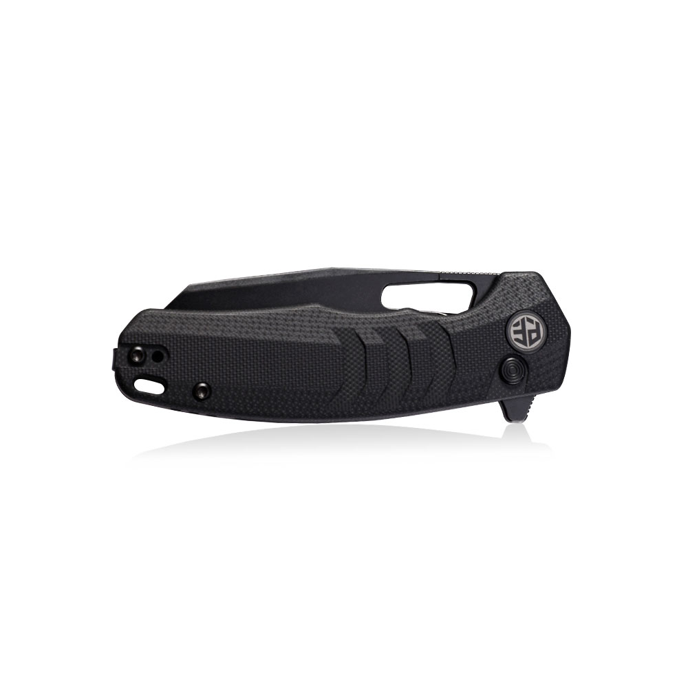 - Rękojeść: czarny kompozyt G10, stalowe linersy, klips stalowy (Tip-Up, Deep Carry)