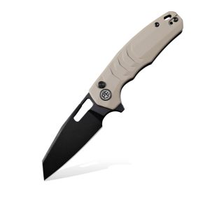 - Ostrze: składane (folding knife), sheepsfoot (wharncliffe) ze szlifem płaskim, gładka krawędź tnąca