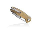 **WYGODNA RĘKOJEŚĆ**: Okładziny rękojeści wykonane zostały z wytrzymałego kompozytu G10. Materiał okładek jest odporny na zawilgocenie, zmiany temperatury, większość rozpuszczalników i kwasów i charakteryzuje się odpornością na uszkodzenia mechaniczne. Rękojeść o ergonomicznym kształcie bardzo dobrze dopasowuje się do ręki i zapewnia stabilny i mocny chwyt. Okładki zostały wzmocnione backspacerem z G10 dobranym odcieniem do głównego materiału rękojeści.