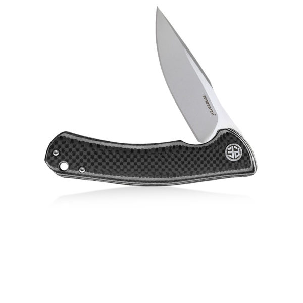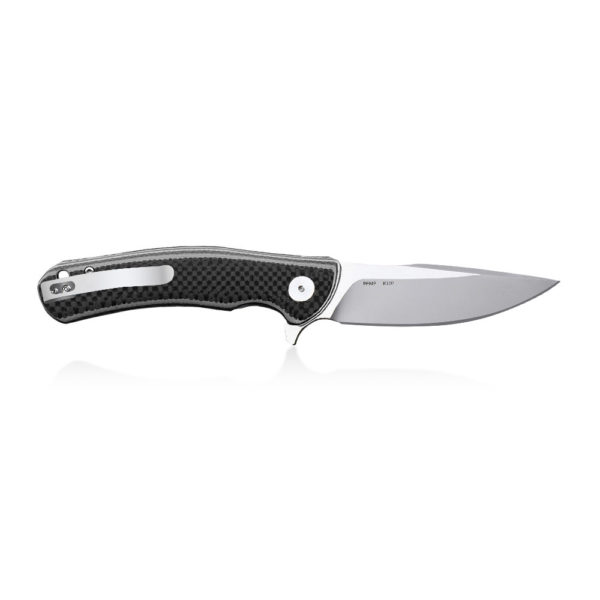 Petrified Fish Warrior PF-949 GA Carbon Fiber with Gray folding knife has an efficient drop point blade made of K110 steel. The handle of the knife is made of carbon fiber. The knife’s backspacer is made of carbon fiber and the deep carry clip is made of titanium. The knife is opened due to the protruding flipper and the blade is blocked by a liner lock. Knife comes with steel ID card and lanyard.