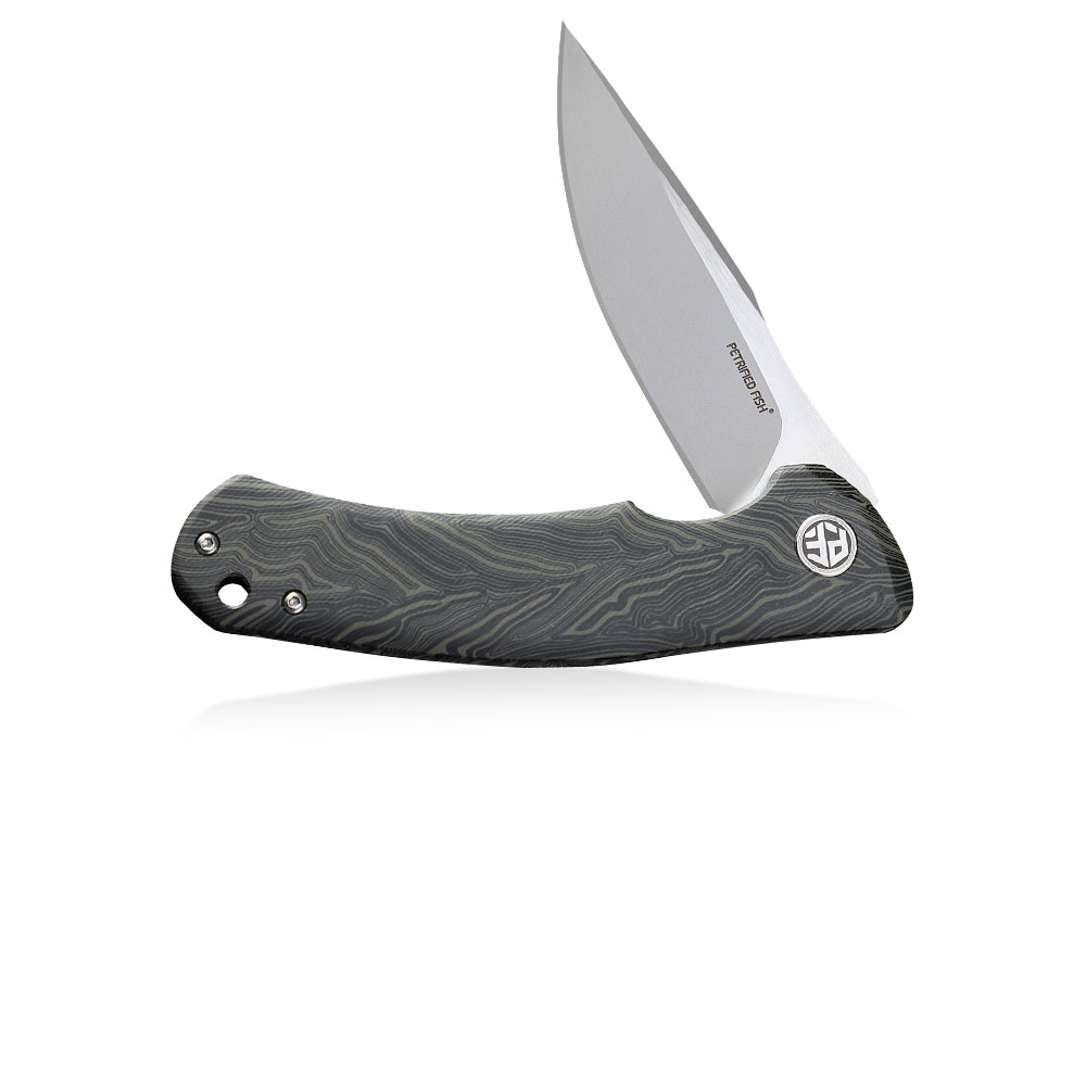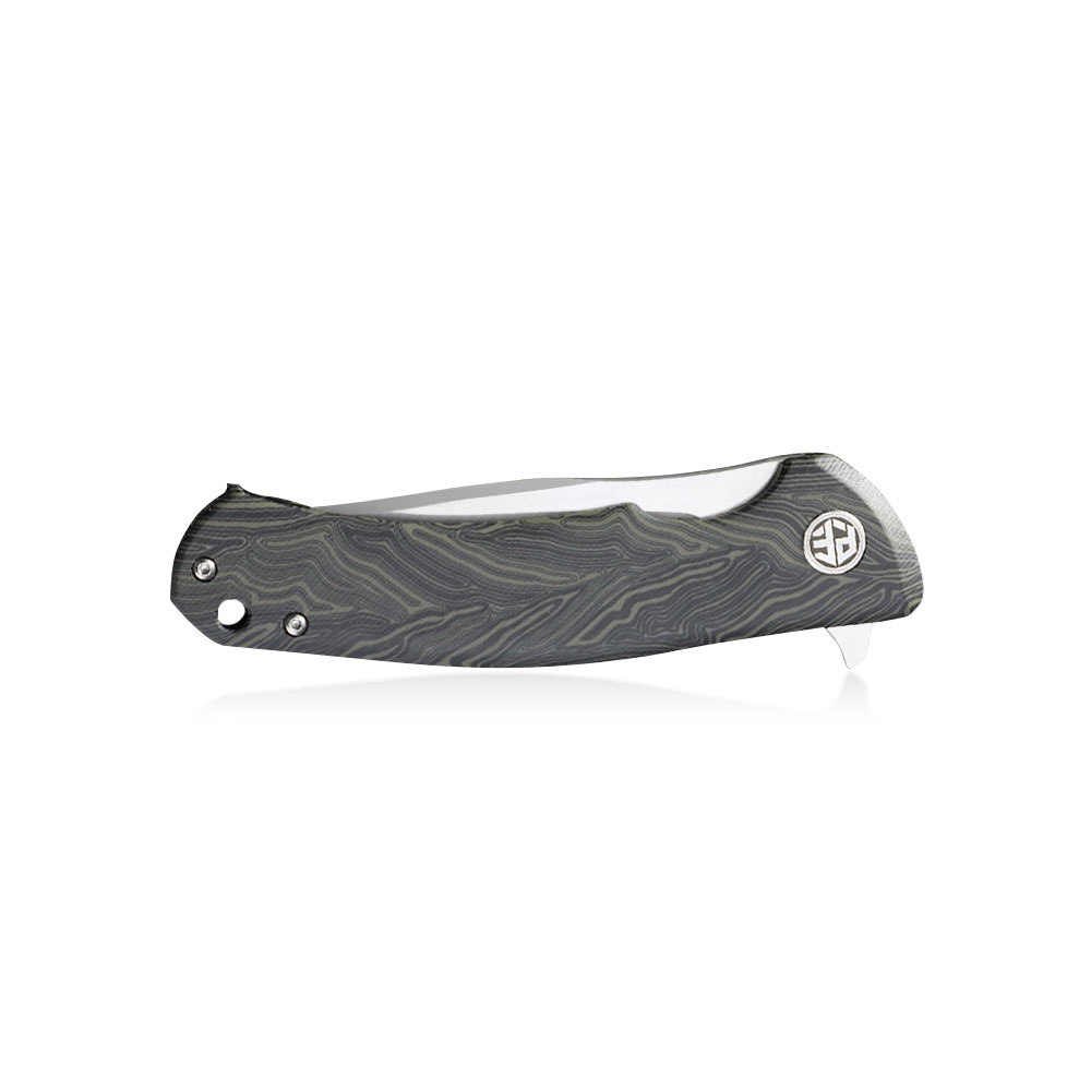 - HANDLE: G10 Damask Pattern Black Green + carbon fiber backspacer