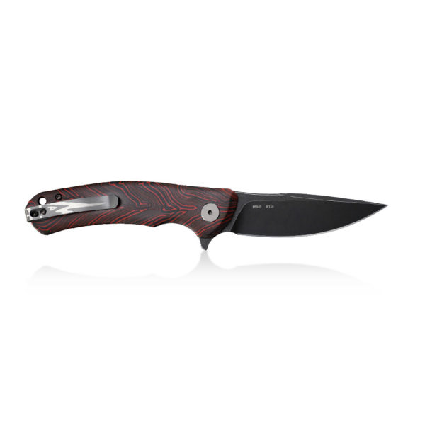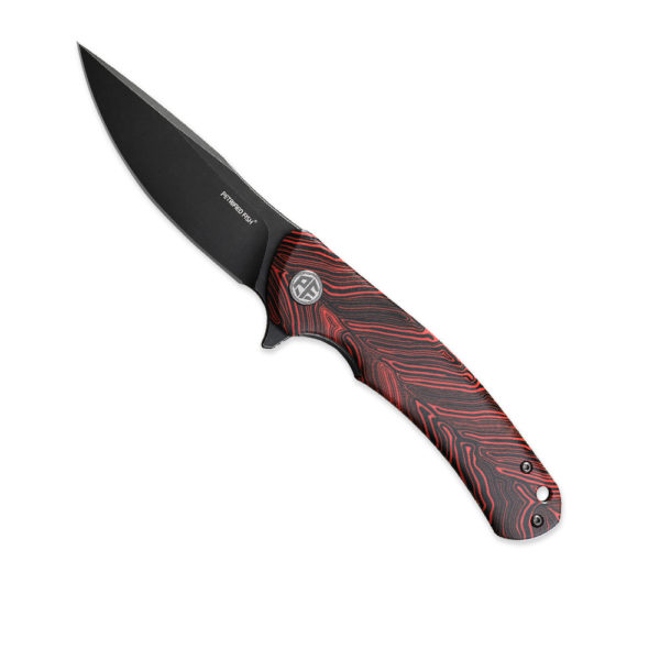 Petrified Fish Warrior PF-949 R Red Damask Pattern folding knife has an efficient drop point blade made of K110 steel. The handle of the knife is made of G10 composite formed in a damascus pattern (red and black colours). The knife’s backspacer is made of carbon fiber and the deep carry clip is made of titanium. The knife is opened due to the protruding flipper and the blade is blocked by a liner lock. Knife comes with steel ID card and lanyard.