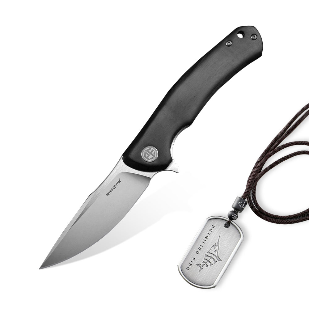 Petrified Fish Warrior PF-949 WOB Black Ebony Folding Knife