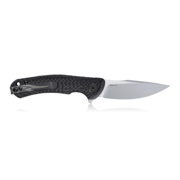 Petrified Fish Warrior X PF-949X XC Carbon Fiber folding knife has an efficient drop point blade made of K110 steel. The handle of the knife is made of carbon fiber. The knife’s backspacer is made of carbon fiber and the deep carry clip is made of titanium. The knife is opened due to the protruding flipper and the blade is blocked by a liner lock. Knife comes with steel ID card and lanyard.