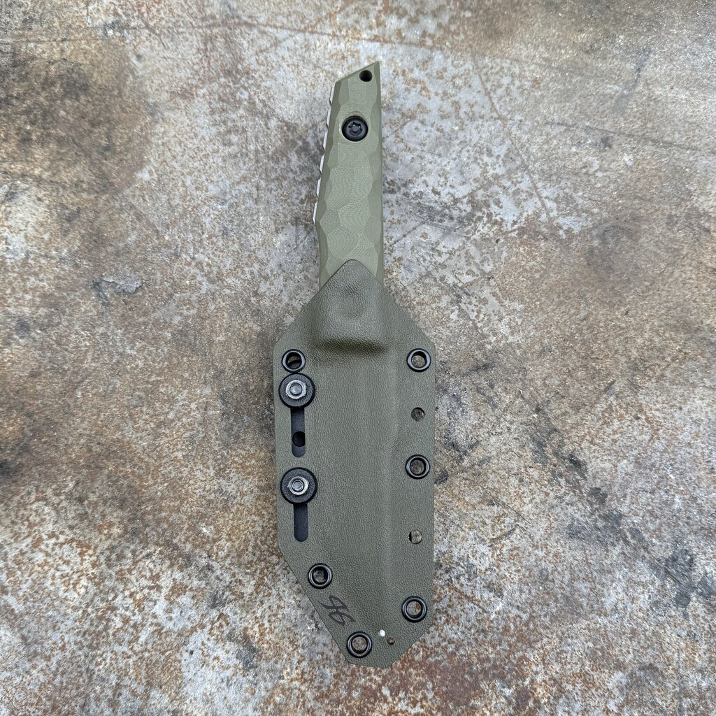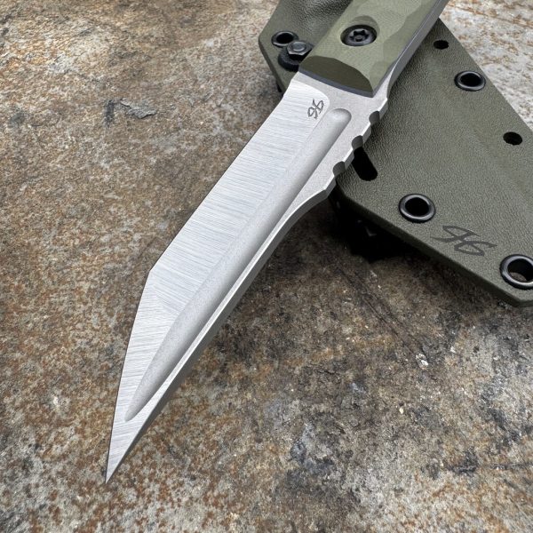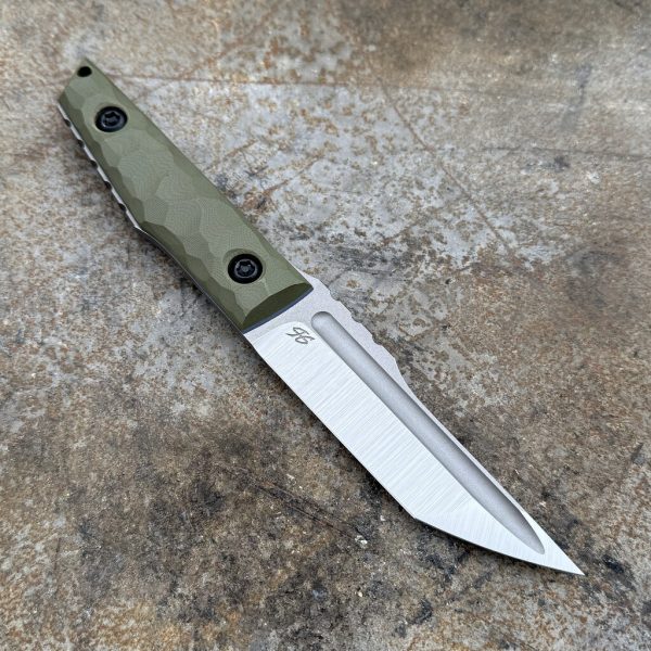 PG Knives | Piotr Gosciniak Compact Tanto “Charcoal Mist” | Satin Elmax Olive G10 Olive Kydex