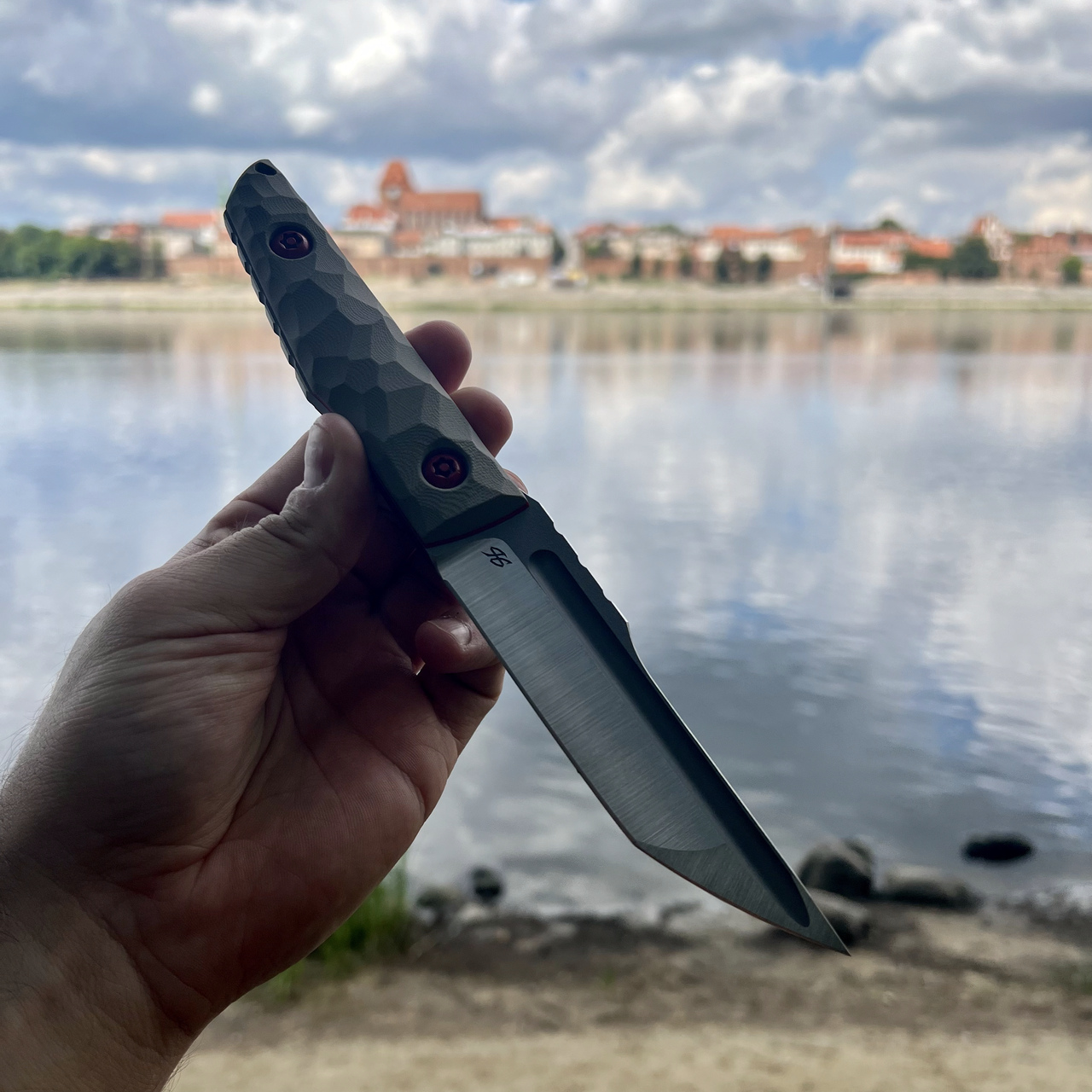 PG Knives are distinguished by designs based on balancing at the junction of various styles. Complicated grinds on the blades, referred to as “fusion”, are details that the knifemaker is particularly fond of and which he meticulously refines. The combination of precision workmanship, modern materials and futuristic shapes gives an unusual value appreciated by users in many countries around the world. PG Knives are designed for intensive use. In the workshop, most of the work is done manually or with manually operated machines. The entire process related to steel processing, starting from cutting out the initial shape, through hardening and grinding, is carried out by the knifemaker himself. The same applies to the processing of materials for handles (G10, micarta, carbon fiber, etc.) and sheaths (Kydex). The knifemaker’s offer includes blades for everyday (EDC), outdoor, survival and tactical applications. In particular, features attributed to the last of these groups can be found in almost all of his projects.