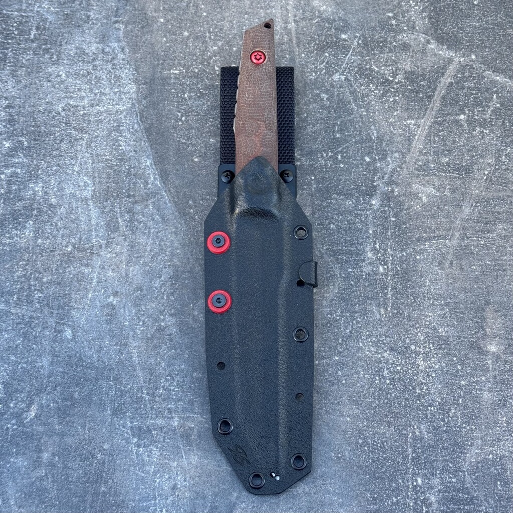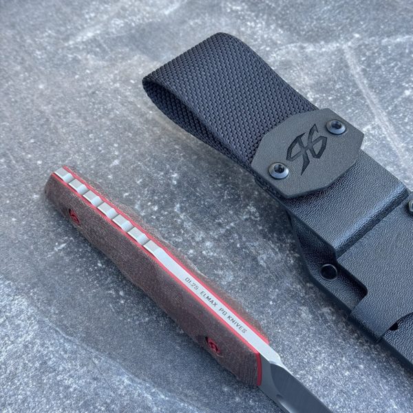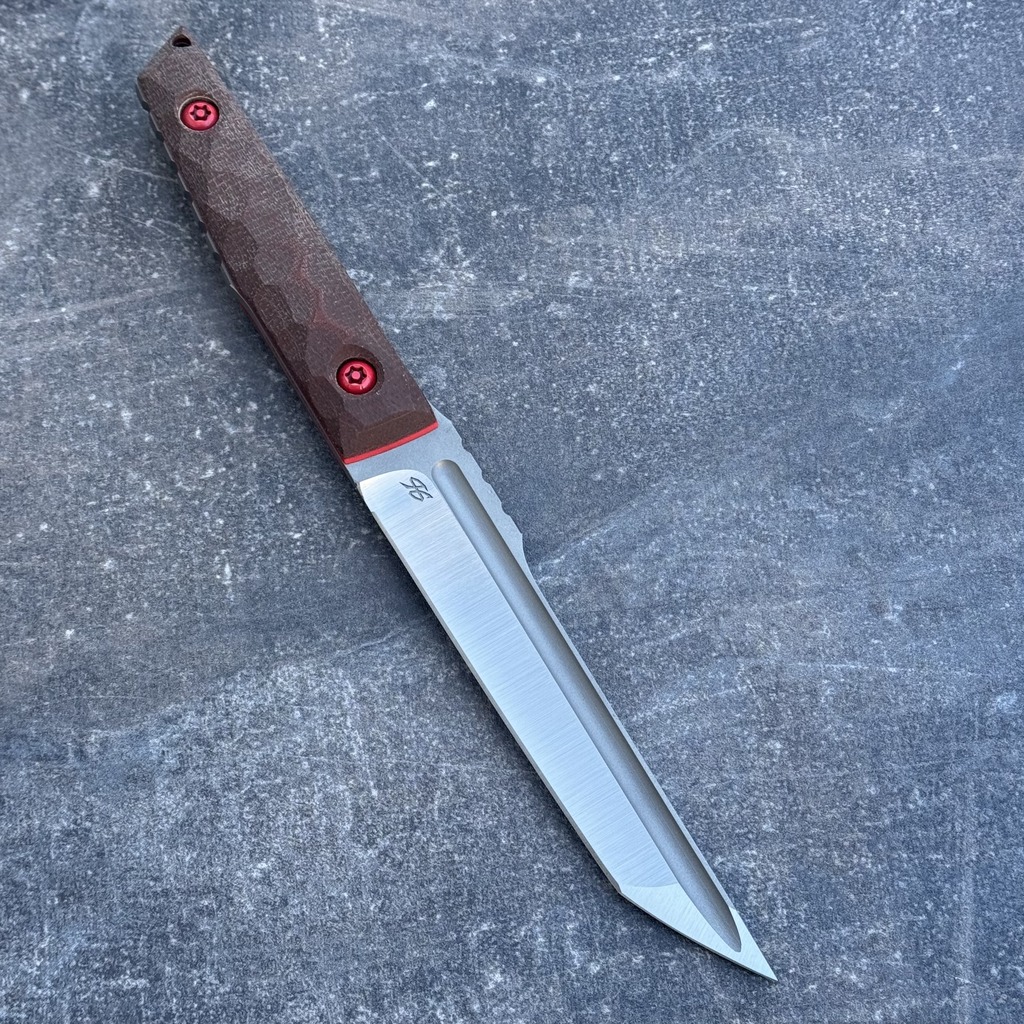 PG Knives | Piotr Gosciniak Tanto 02 “Enrai” | Satin Elmax Brown Micarta/Red G10 Spacers G10 Black Kydex
