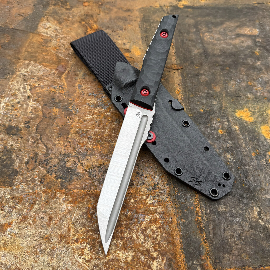 PG Knives | Piotr Gosciniak Tanto 02 “Raijin” | Satin Elmax Black G10 Black Kydex