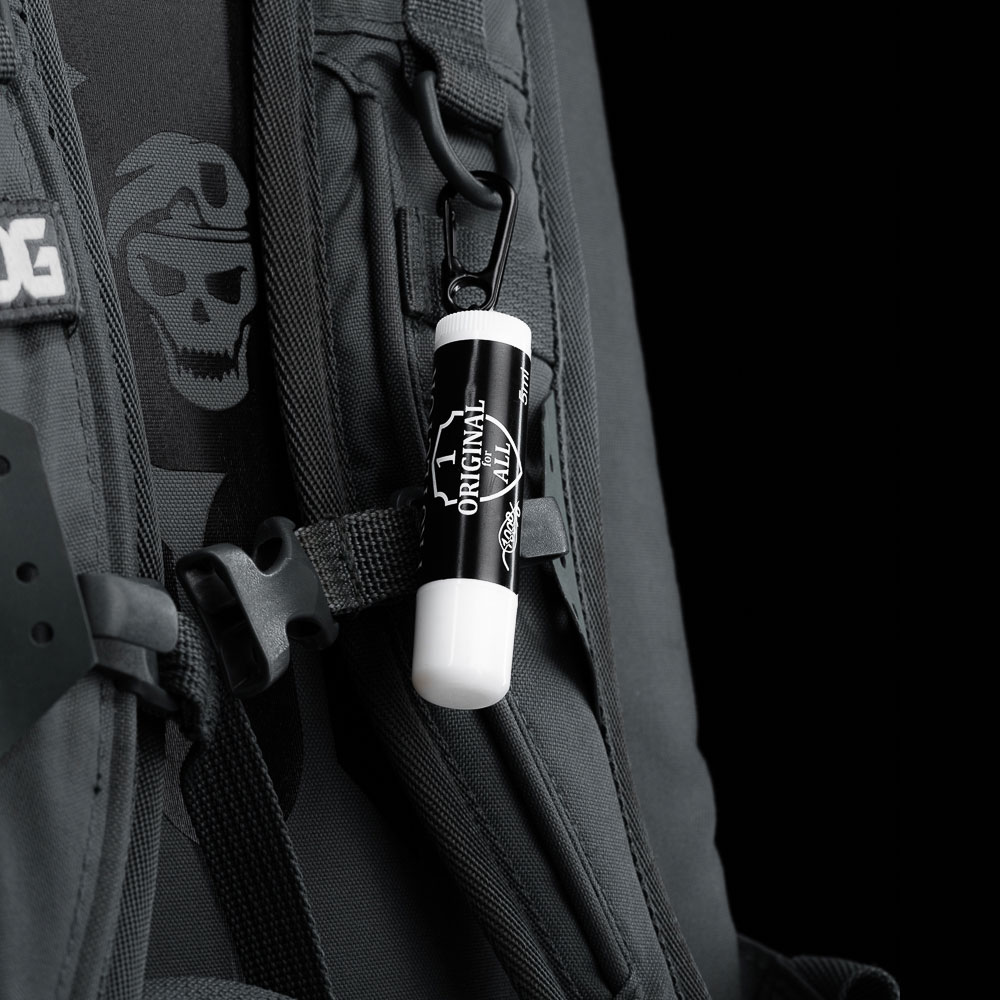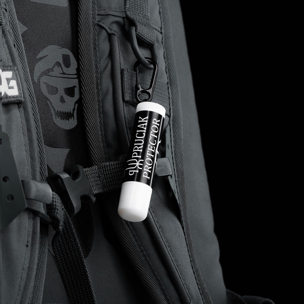 Pruciak Protector Original wax stick keychain version to care and protect the knife. Developed by Pawel Pruciak. The original recipe for the care and protection of the knife, provided in the form of a convenient, pocket-sized lipstick-sized applicator. Universal in use, for comprehensive protection of all components of the knife: steel blade, handle (wood, micarta, etc.), knife sheath (leather sheath). Gives shine, protects against water. Made of completely natural ingredients, it is safe in contact with food. Minimalist, not taking up much space. A great solution to help you take care of your equipment during a trip to the forest, trip, camping, etc.