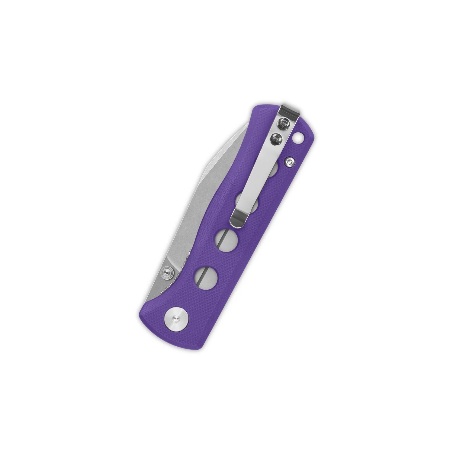 Nóż składany QSP Knife Canary QS150-D1 Stonewashed 14C28N Purple G10 to małe poręczne ostrze składane na co dzień.