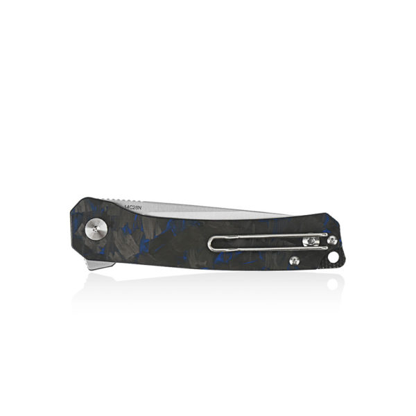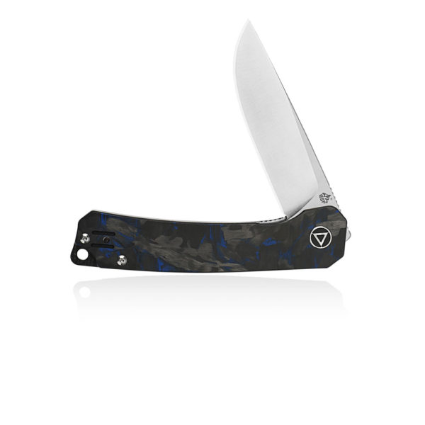 Presented QSP Knife Osprey QS139-G1 Folding Knife has a handle cladding made of a combination of a durable composite G10 and carbon fiber with “piercing” color additive. In this case it is blue color.