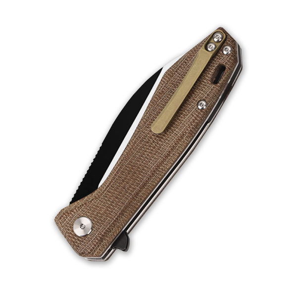 The handle itself is equipped with linings made of brown linen micarta with an skidproof and rough structure. Micarta is a popular material on the handle, which after styling gives the effects of naturalness. In addition, it has very good performance – it is resistant to moisture, temperature changes, most solvents and acids and therefore has a high resistance to mechanical damage.