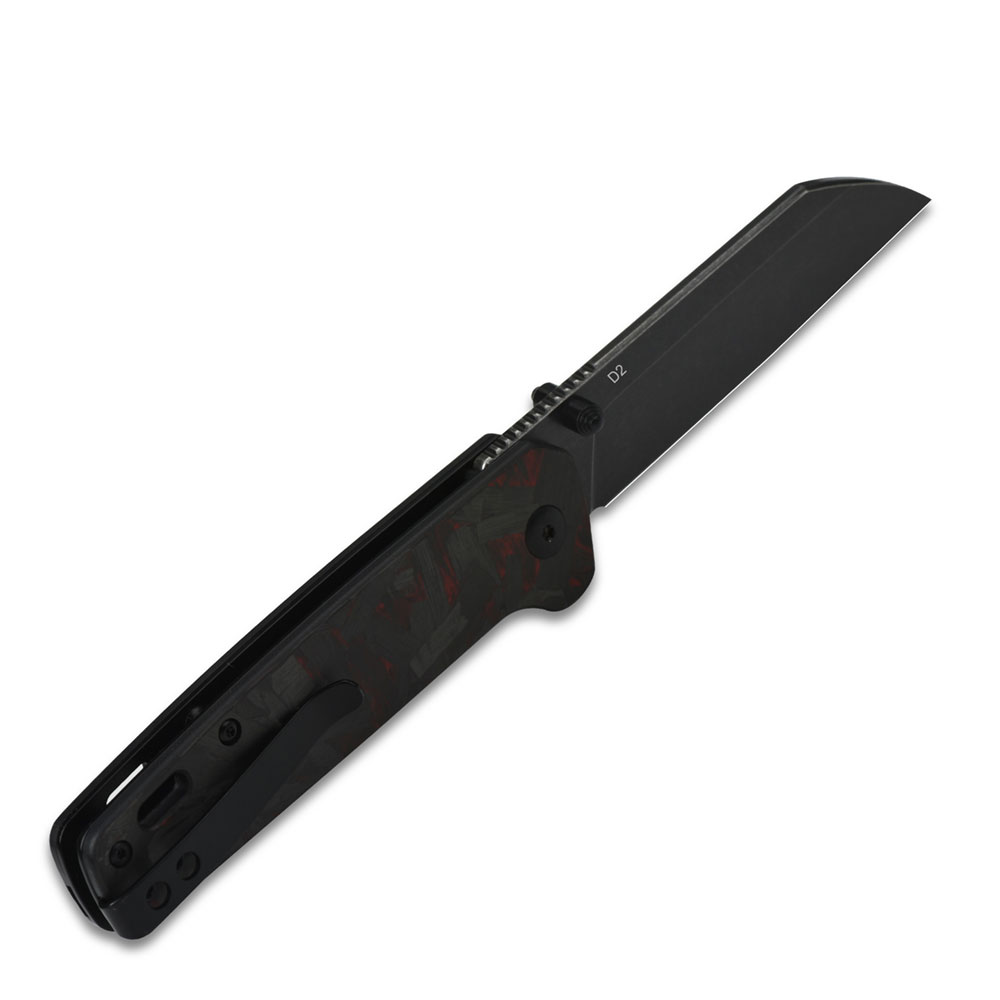 QSP Knife Penguin QS130-URD Folding Knife Carbon with Red. Black oxide & stonewash blade.