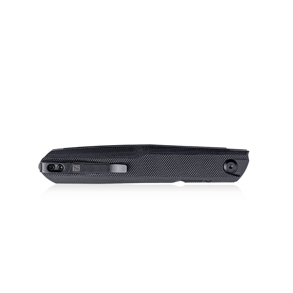 - Rękojeść: stalowe linersy, okładki z czarnego G10, stalowy klips mocujący (Tip-Up, Deep Carry)