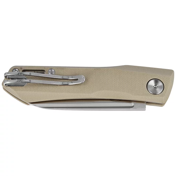 Nóż składany Real Steel Solis Lite Coyote G10, Satin D2 by Poltergeist Works (7064CS) to przyjemnie wglądające ostrze typu sheepsfoot świetne na użytek codzienny.