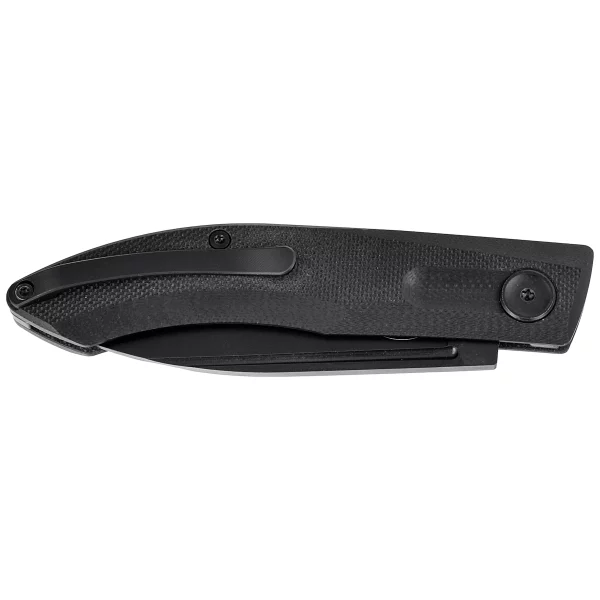 Rękojeść wykonana z G10, czyli włókna szklanego prasowanego pod ciśnieniem z syntetyczną żywicą, posiada wygodną fakturę, która zapewnia pewny chwyt nawet w trudnych warunkach. Duża śruba pivota to charakterystyczny element projektów Jakuba Wieczorkiewicza. Solidny backspacer zapewnia sztywność i wytrzymałość całej konstrukcji. Prosta i pewna budowa tego noża sprawiają, że można go używać przez wiele lat. Jednopozycyjny klips typu deep carry, zamontowany po prawej stronie, umożliwia przenoszenie noża w pozycji tip-up, z czubkiem ostrza ku górze. To elegancki i funkcjonalny folder, który spełni oczekiwania najbardziej wymagających użytkowników.