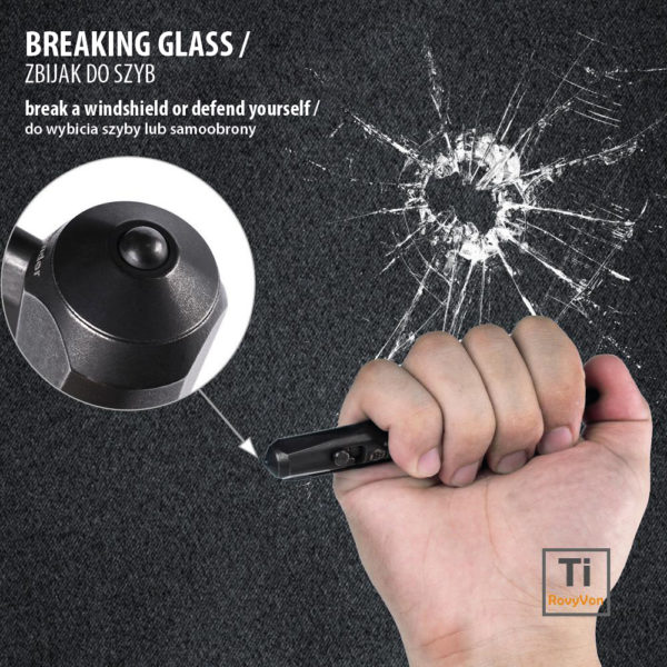 In addition to the basic function, it has a glass breaker, which, if necessary, can be used to break a car window to free a child or a pet left inside. The titanium construction also makes it a durable self-defense tool, very light and comfortable to use.