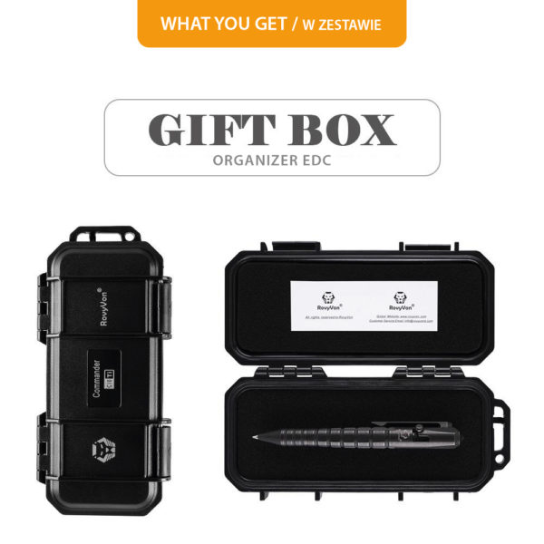 EDC organizer RovyVon®, made of durable polycarbonate for storing a pen (can be used as a pencil case) or other accessories not included in the presented set, such as a flashlight, folding knife, pen etc. Organizer dimensions: 178 x 82 x 34 mm. More about the features of the organizer itself can be found HERE.