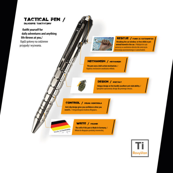 RovoVon Tactical Pen Commander C10 Natural Titanium