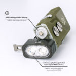 The Angel Eyes E1 is powered by the RovyVon hybrid battery system, the built-in Lipo battery is for daily use and high performance and the replaceable AAA battery is for long runtime like camping, hiking, etc., or where there’s no access to charge the Lipo battery. The E1 body is made of polyamide that is lightweight and durable, it weighs 39g.