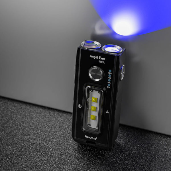 Prezentowany model latarki RovyVon Angel Eyes E200r wykonany z wytrzymałego aluminium posiada wydajne oświetlenie główne i boczne na bazie diod CREE. Sygnalizacyjne diody frontowe dają czerwony lub niebieskie strumień świetlny, oświetlenie boczne daje maksymalnie 1000 lumenów mocy świetlnej. Ładowany za pomocą złącza USB-C akumulator, zapewnia czas pracy o długości 1440 mAh (maksymalnie 140 godzin świecenia). Do dyspozycji użytkownik ma 8 różnych trybów pracy, które posłużą jako wsparcie podczas wykonywania różnorodnych zadań.