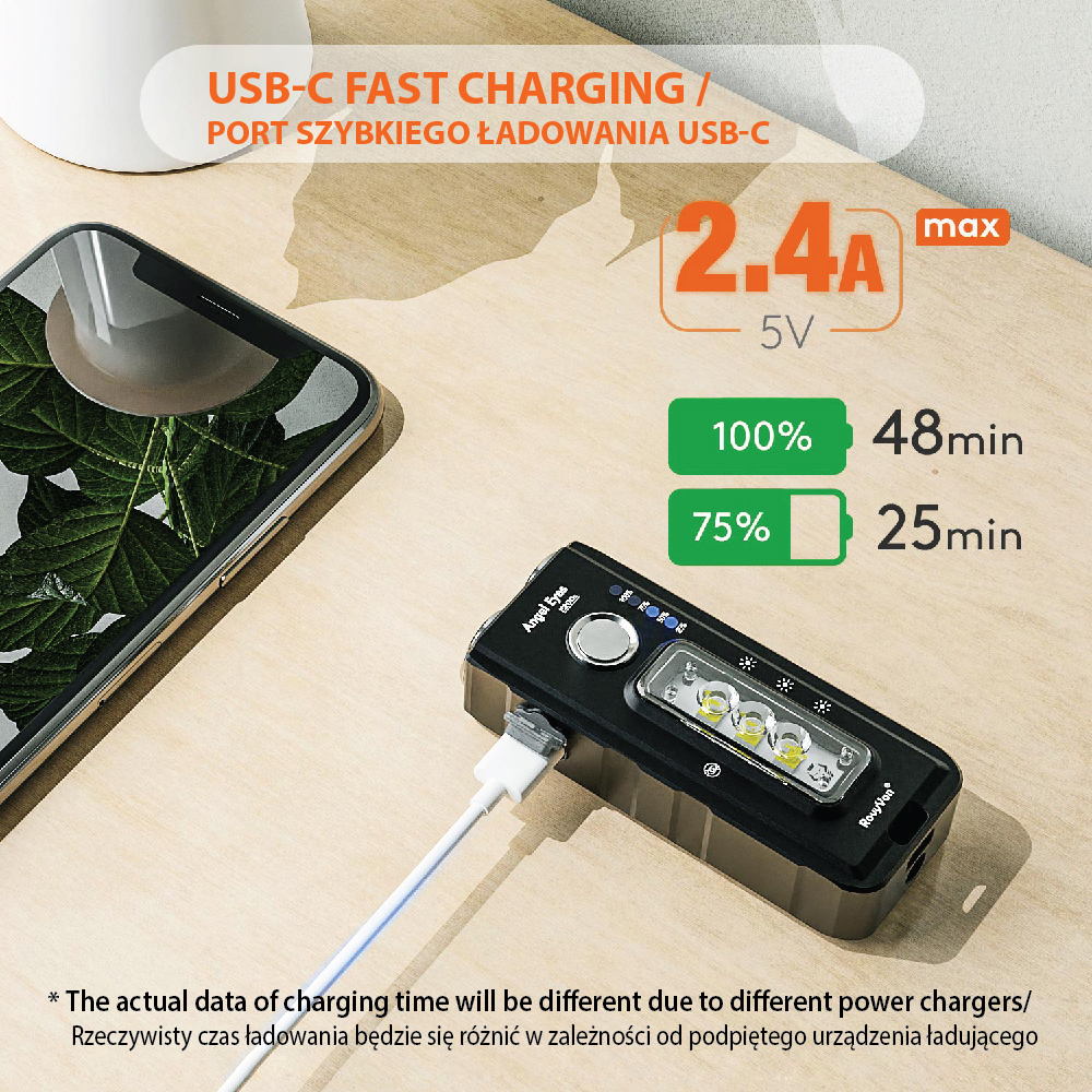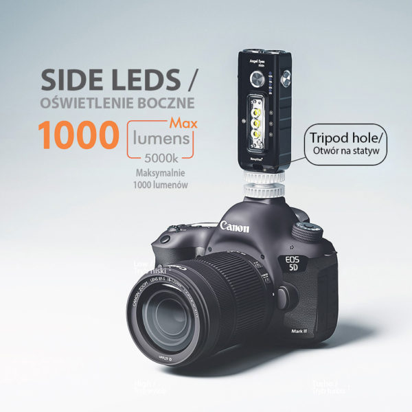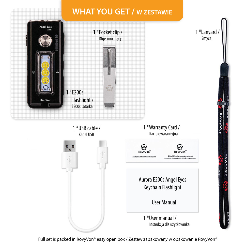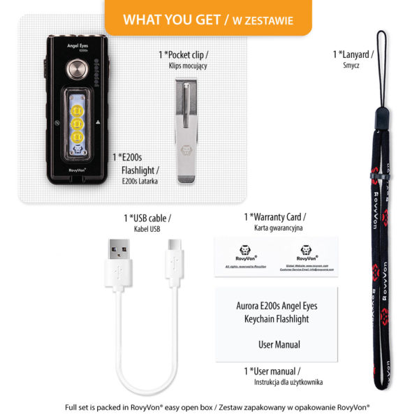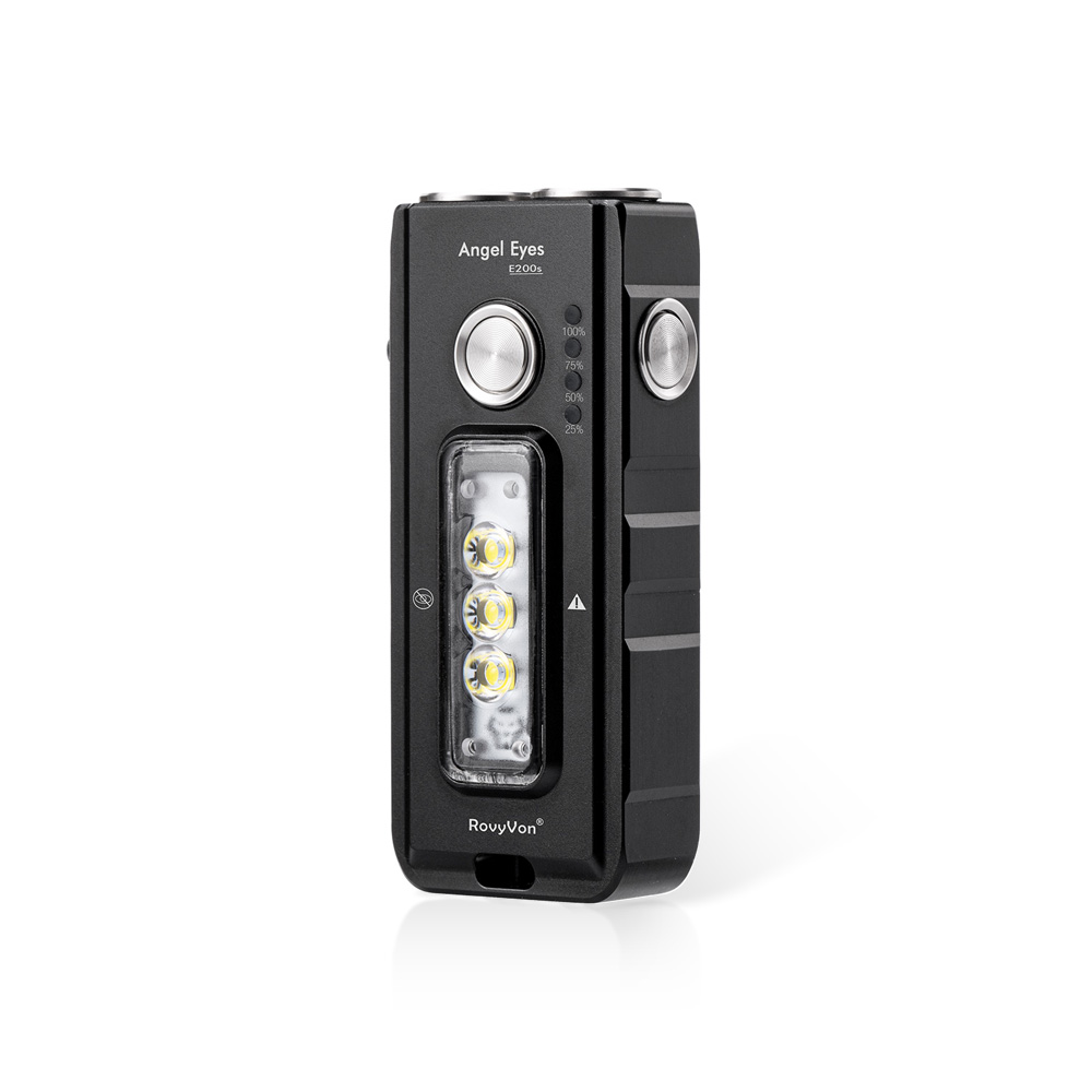 Angel Eyes E200 is the RovyVon® line of flashlights, with its idea deviating from the classic cylindrical designs. The intention of the creators was to bring a note of freshness to the world of flashlights dominated by oval shapes. The departure from the cylindrical housing, in addition to the interesting appearance, allowed to place a battery with a larger capacity, which, combined with efficient LEDs, translated into very good usable effects, including long operation time.