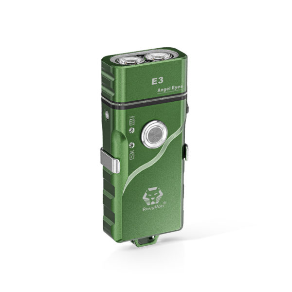 Prezentowana latarka LED RovyVon Angel Eyes E3 Green posiada dwie diody dające maksymalne oświetlenie o mocy aż 700 lumenów oraz korpus z aluminium 6063 w kolorze zielonym. Wbudowany akumulator litowo-polimerowy zapewnia maksymalnie 54 godziny czasu pracy.