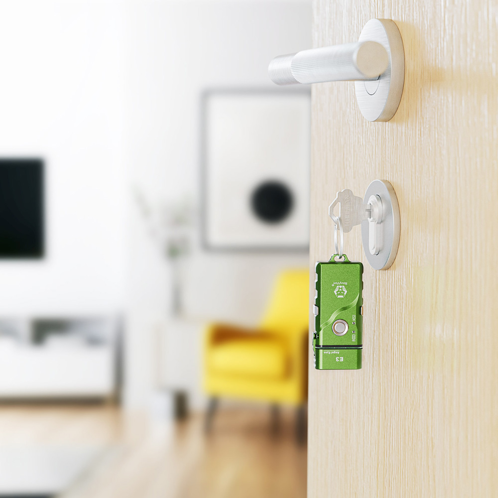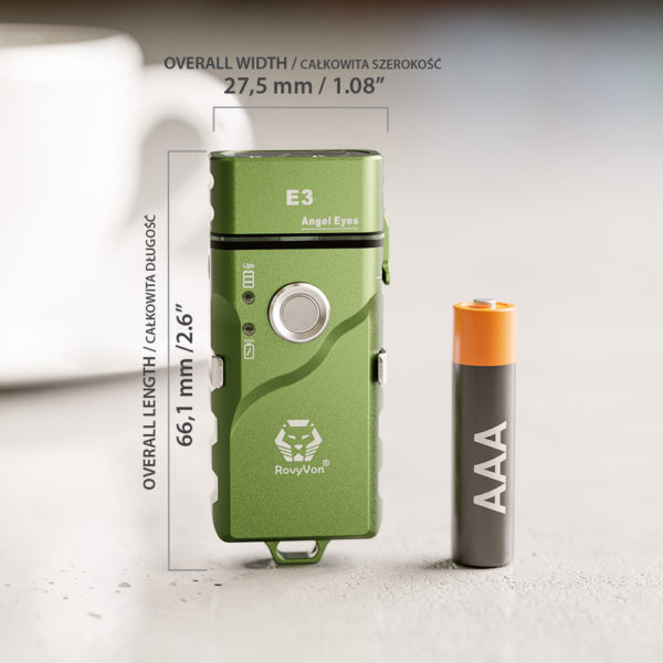 Latarka LED RovyVon Angel Eyes E3 Green Hybrydowa Akumulator i Bateria AAA 700 Lumenów to małe użyteczne źródło światła w formie breloka do kluczy.