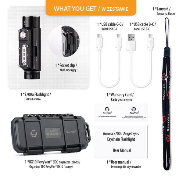 Angel Eyes E700 to linia produktów RovyVon® z kategorii wielofunkcyjnych latarek o wysokiej mocy świetlnej. Maksymalna moc jaką można uzyskać włączając oświetlenie frontowe to aż 2800 lumenów.