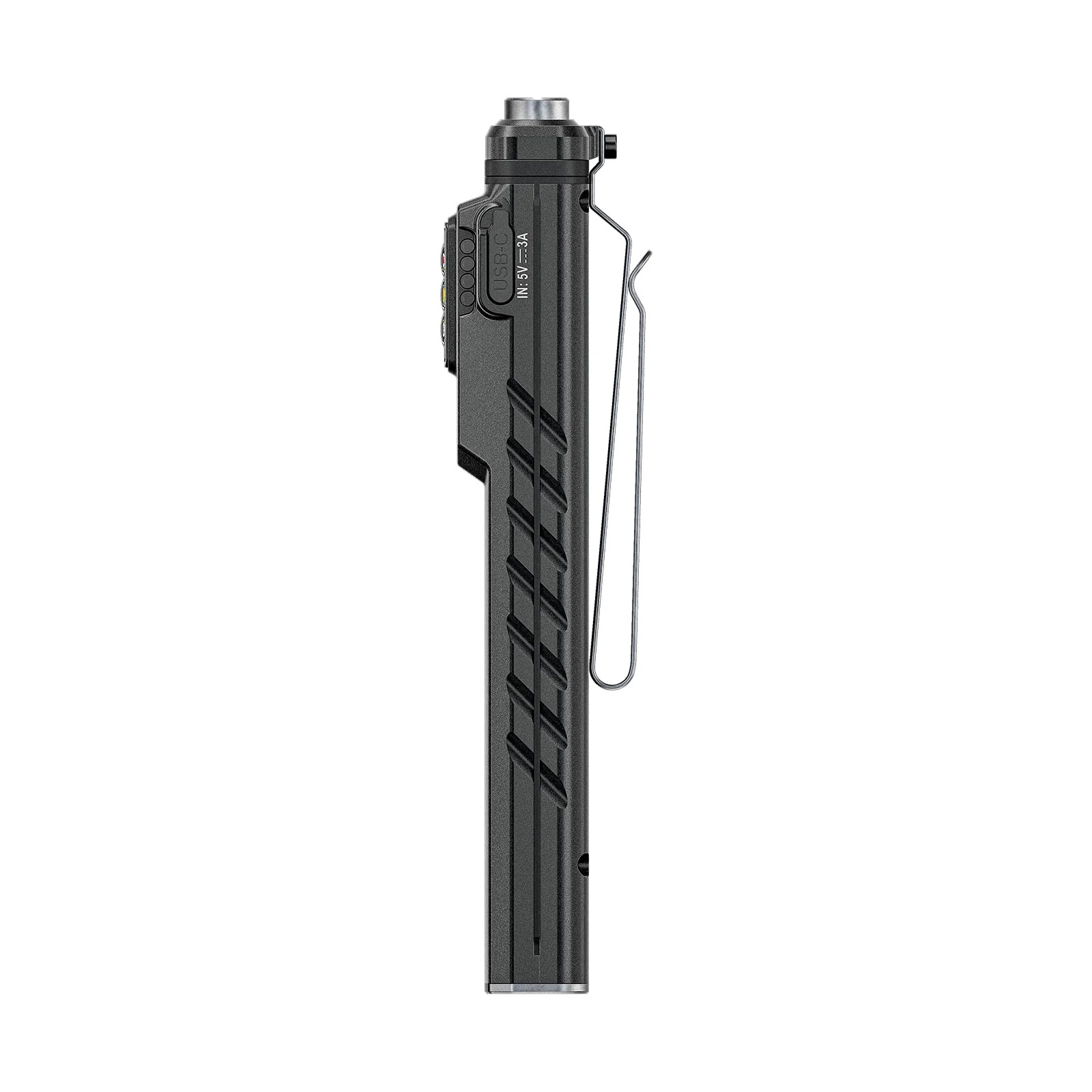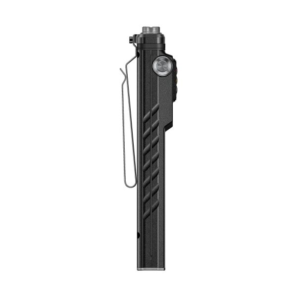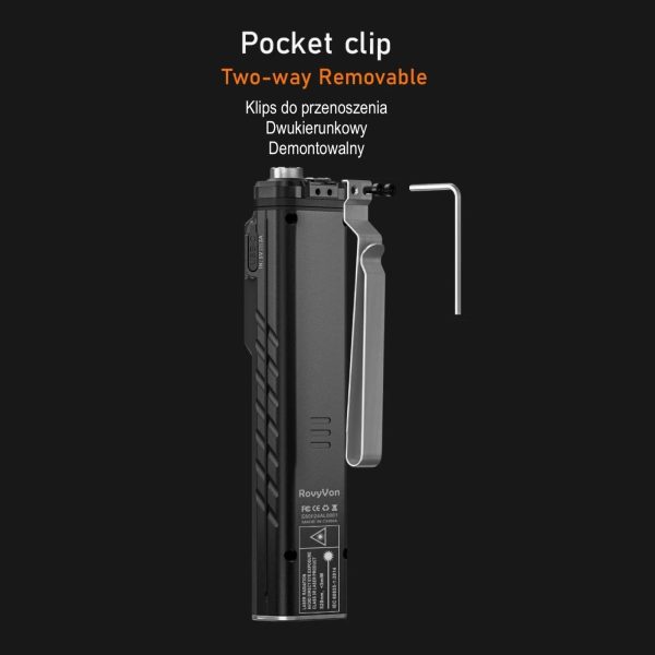 **STALOWY KLIPS DO PRZENOSZENIA**: Montowany na latarce klips służy do jej przypięcia do elementu odzieży (kieszeni spodni, koszuli, rękawa), saszetki, torby, plecaka, itd. Jego konstrukcja sprawia, że latarkę można zamontować w obu kierunkach (diodą do przodu lub tyłu).