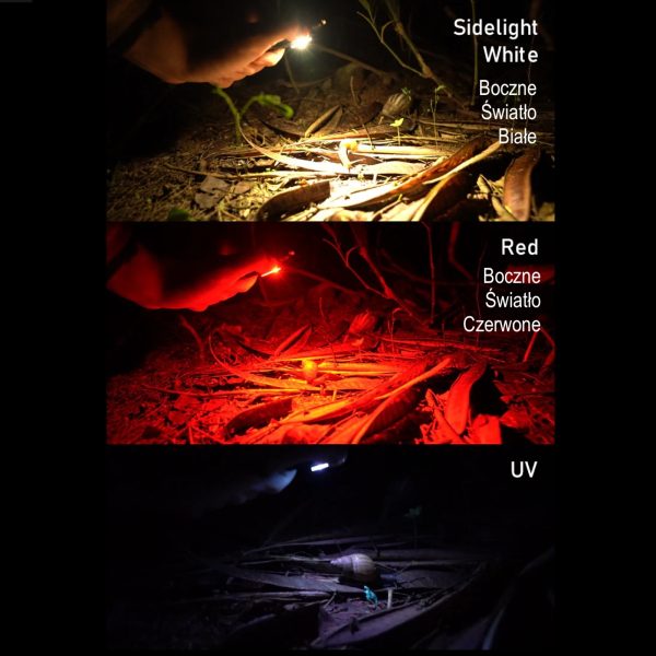 **BOCZNE OŚWIETLENIE SPECJALNE: ŚWIATŁO CZERWONE, BIAŁE I UW**: Na oświetlenie boczne składają się 3 diody LED, które dają 3 rodzaje światła:
