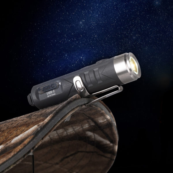 The Aurora A1 is a super compact yet bright keychain flashlight, it’s lightweight and durable thanks to its polyamide material body. It’s equipped with an SST-20 6500K cool white LED, a max output of 650 lumens. It runs a 300 mAh battery that can be charged via the USB-C port, when working at moonlight mode, it provides max runtime of 56 hours. The new magnetic pocket clip and magnetic tail base buckle are compatible with the Aurora A1.