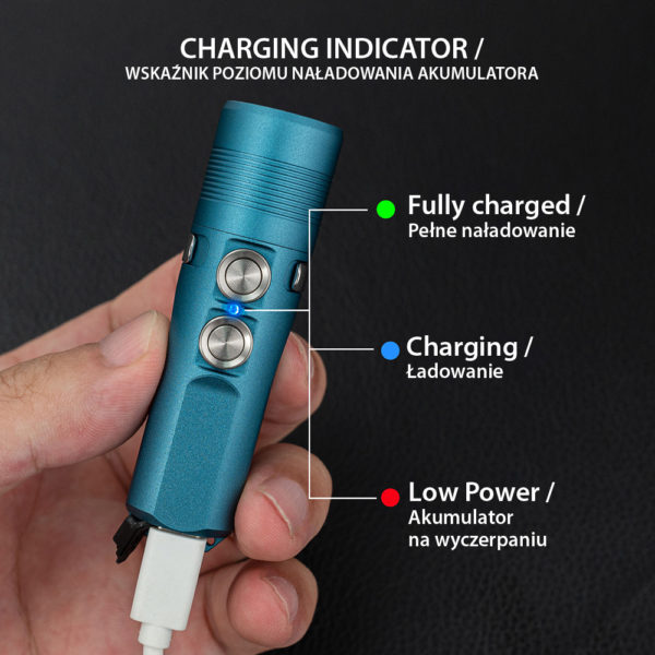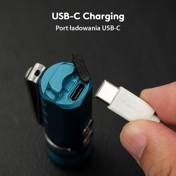 The 1st gen Aurora Series compact EDC flashlight – the A23 was announced in 2019, 3 years flew away, and it’s time to upgrade it. The compact line started from the A23 and the upgrade keeps the origin. Comes to the 2nd generation, the first thing we took into consideration was keeping the size the same or even smaller than the 1st gen but increasing the battery capacity for a longer usage time, to be honest, it’s a hard time during the designing period, but the good thing is we made it. The size is the same as the 1st gen Aurora A23 – 76mm (Length) x 21.5mm (Diameter), palm size, weighs 44.7g/1.58oz, but the capacity of the internal Li-po battery increased by 41.6% to 850mAh, it will extend the runtime of the turbo mode to 100 minutes (with stepdown). With the battery upgraded, it’s no sense that we don’t update the charging port to USB-C, in the packaging, a USB A-C cable was included, and you can charge your new Aurora A23 more conveniently.