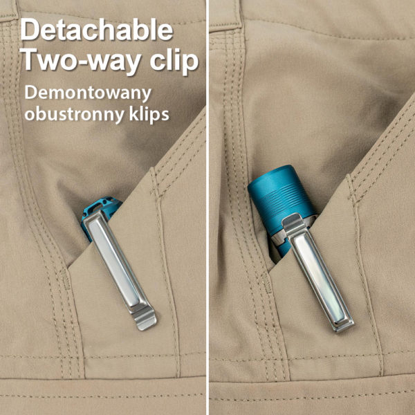Being a compact EDC flashlight, easy-to-carry is an essential factor. People complained about the screw-fixed pocket clip of the 1st gen Aurora A23, you were heard, on the 2nd gen, we redesigned the clip to make it detachable, and yes, reversible. One more thing, it’s magnetic for hands-free work if needed.