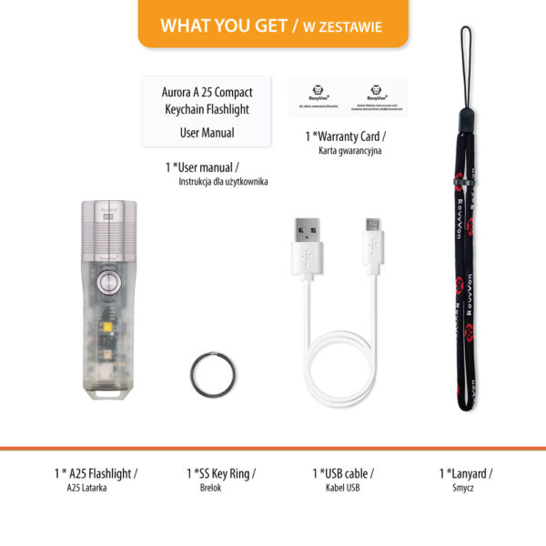 Aurora A25 is a flashlight from the Aurora EDC Series line. This line, as the English name suggests, describes the RovyVon® series of torches designed for everyday use. These are flashlights with full-size shapes and full-size great power.
