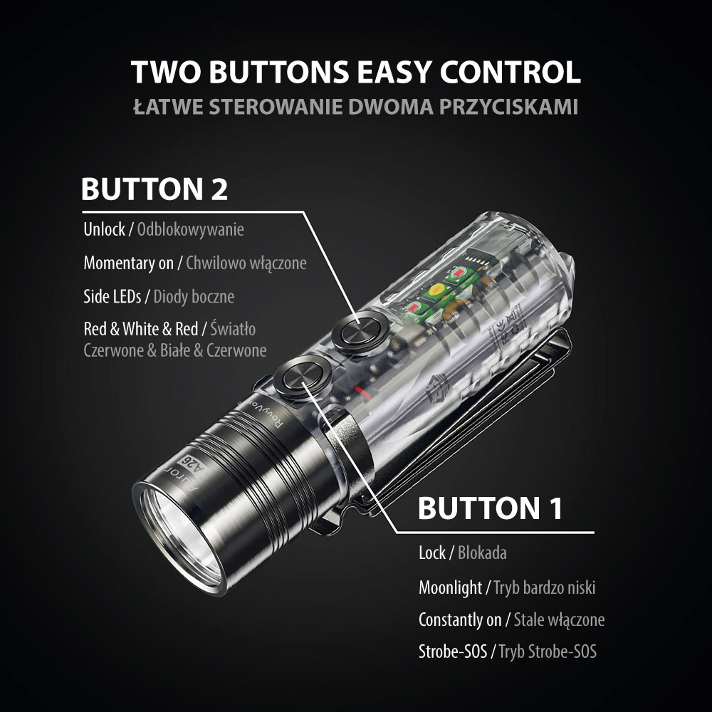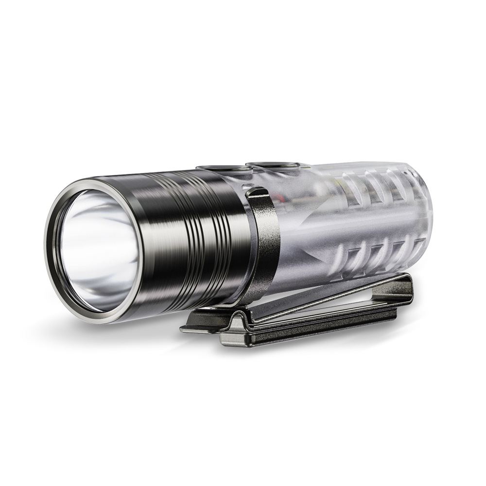 The Aurora A26 G2 is a compact yet bright EDC flashlight, it’s lightweight and durable thanks to its polycarbone material body. It’s equipped with an CREE XP-L HD 6500K cool white LED, a max output of 600 lumens. It runs a 850 mAh battery that can be charged via the USB-C port, when working at moonlight mode, it provides max runtime of 152 hours.