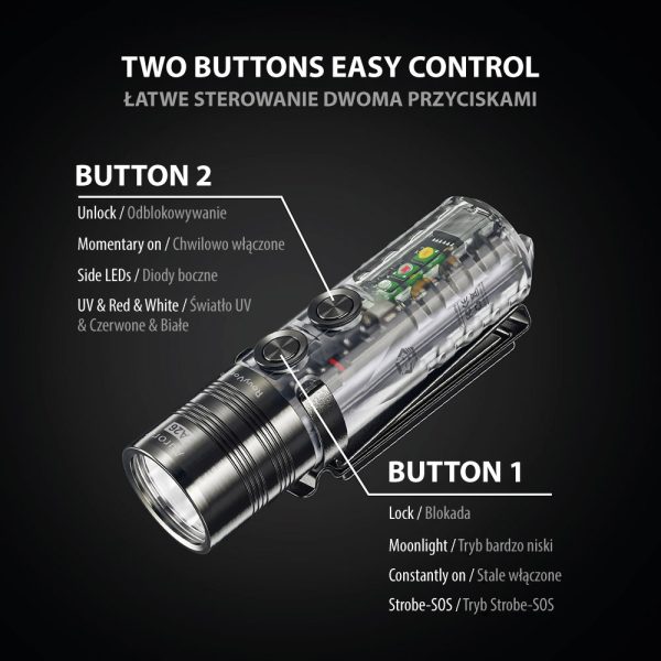 It uses a cool white LED as the primary front light that could boost up to 600 lumens on turbo mode. On the side, it has three aux LEDs – 4000K warm white reading light, 365nm UV black light, and 625nm red light for protecting night vision and as signal light in an emergency.