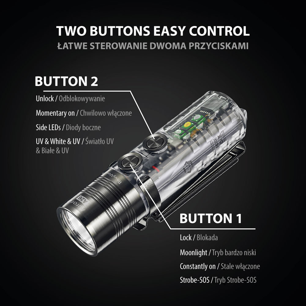 RovyVon Aurora A26 G2 UV/White/UV 600 lm Flashlight is a small, everyday carry flashlight.