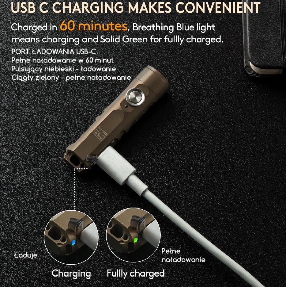 Bring your EDC game up a notch with the Aurora A3 Pro G4. This ultra-durable, rechargeable keychain flashlight is designed with IPX6 water resistance. Enjoy a powerful beam from the high-performance LED with the optic reflector up to 650 lumens and 110m beam distance, and the convenience of USB-C charging. Upgrade your everyday carry today!