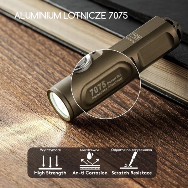 RovyVon Aurora A3 Pro G4 Desert Tan Alu 7075 650 lm Keychain Flashlight is a small but bright EDC flashlight.